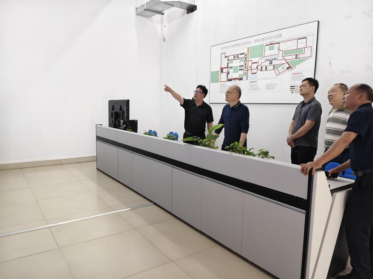 2026年3月26日上午,梁家斌副校长到武鸣校区率领武鸣校区保卫办检查安全保卫工作,现场检查了视频监控、消防设施设备、校园交通秩序、校区周边安全等,解决校区安全保卫工作存在的困难和问题,在肯定校区保卫工作的同时,对武鸣校区安全保卫工作提出要求并就需要加强的工作做出布置,强调要统筹发挥好校区保卫办和安保公司保安两支队伍的作用,进一步做好校区的风险研判和防控,坚持预防为主,增强预防的前瞻性,工作做得更细更实,把问题处理在萌芽状态,确保校区安全稳定。